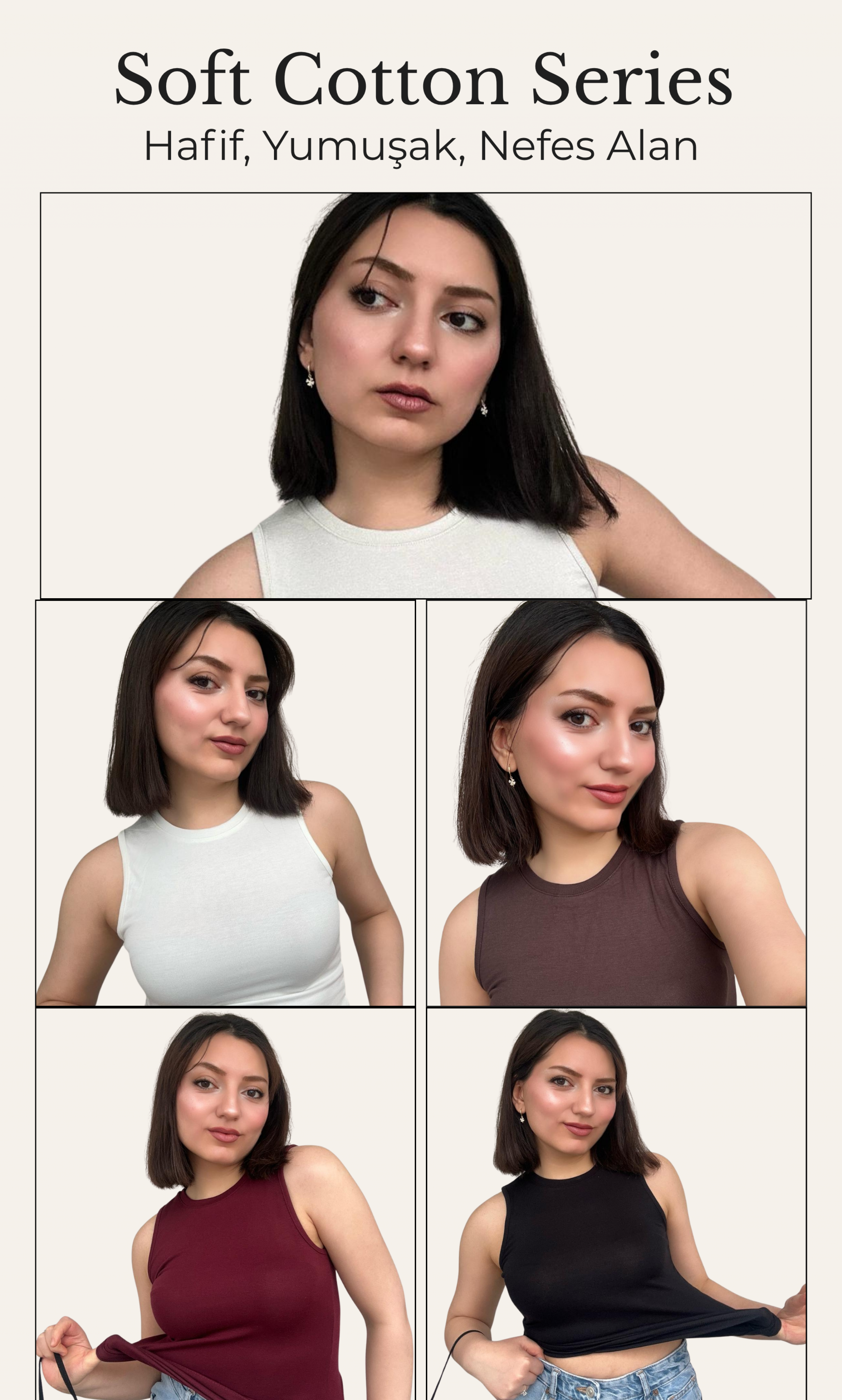 Soft Kahverengi Bisiklet Yaka Sıfır Kol Pamuklu Bo...